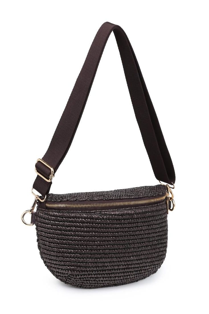 Gizelle, woven texture with a streamlined half‑moon silhouette. Woven exterior, roomy zip-top main compartment, and secure rear zip pocket. Wide adjustable strap and polished hardware allow waist or crossbody wear. Lightweight, structured and versatile, holds phone, wallet, keys with organized ease. A modern everyday belt bag that pairs practical storage with on-trend texture.