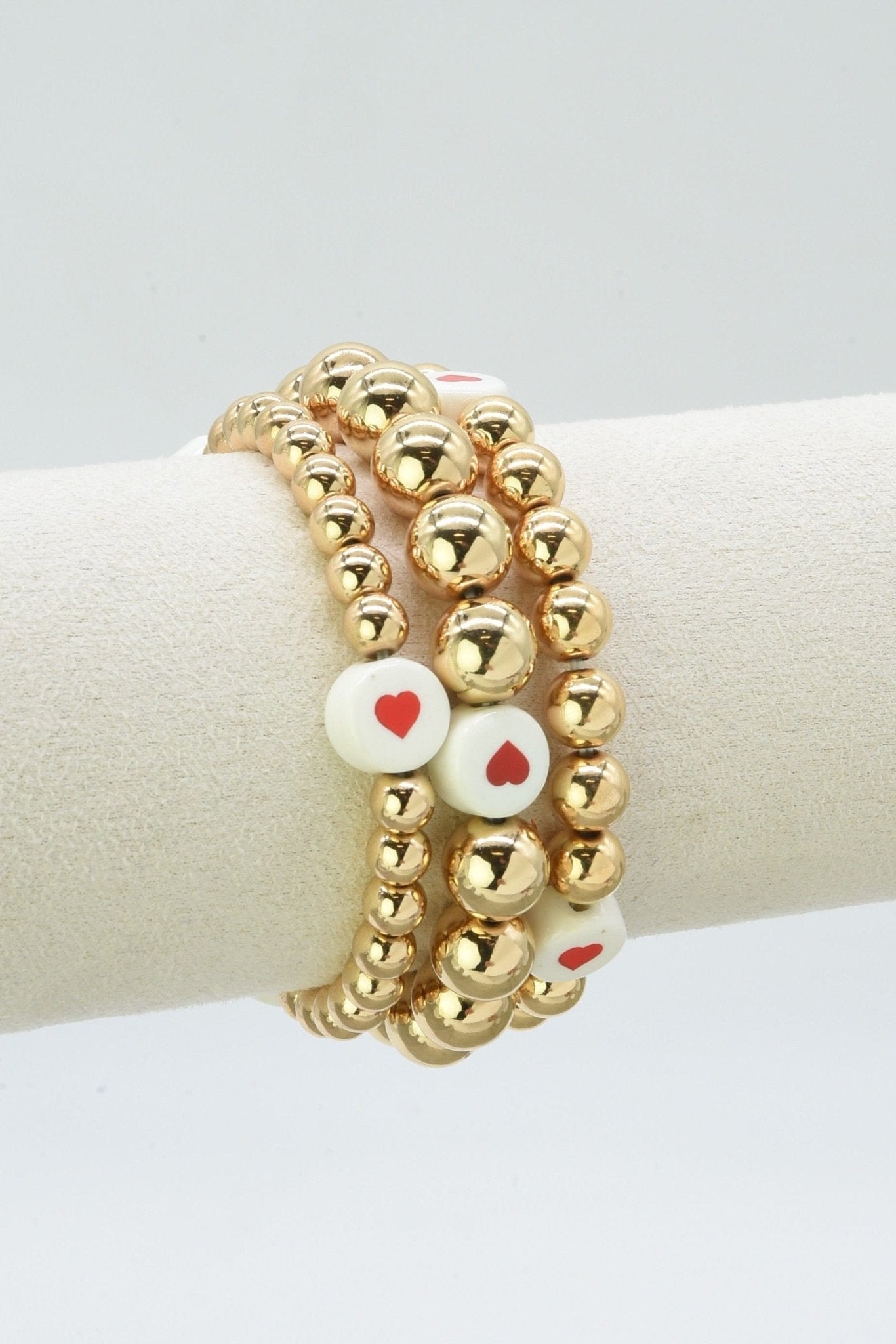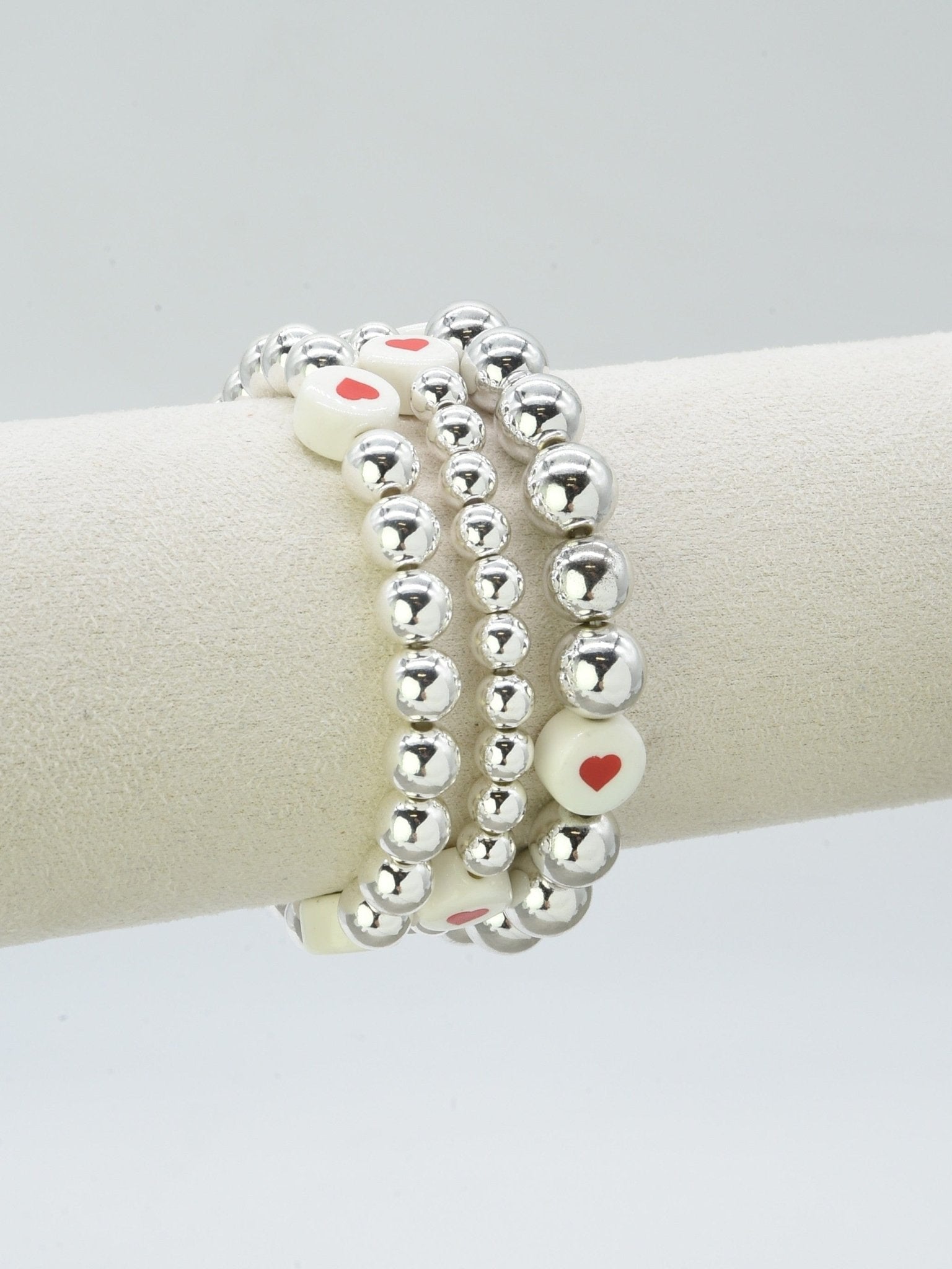 Stack your wrist with love! This charming 3-piece bracelet set features delicate heart-shaped charms that bring instant sparkle to any outfit. Mix and match the pieces to create your perfect look, wear them together for maximum impact or separately for versatile everyday style. Perfect for gifting or treating yourself to a little wrist candy that celebrates all things sweet and sentimental.