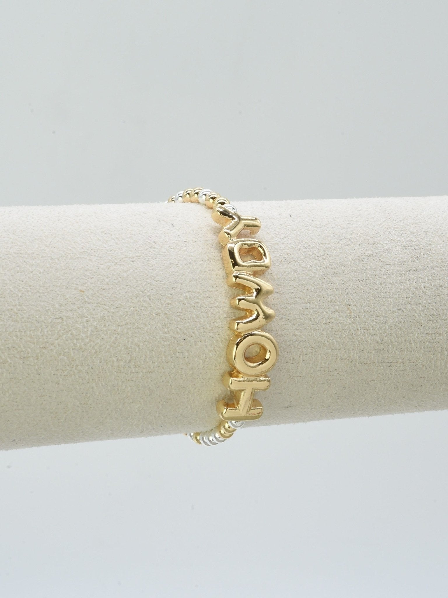 Saddle up for some serious wrist style! This stretchy beaded bracelet brings a fun, Western-inspired vibe to any outfit. The "Howdy" design features charming beads that capture that laid-back cowboy spirit, perfect for adding personality to your everyday look. Easy to slip on and off, it's the ideal accessory for anyone who loves a touch of playful flair. Whether you're channeling your inner cowgirl or just want to brighten your day, this bracelet delivers comfort and character in one adorable package. Pair it with our CB2338 "Yall" Bracelet!