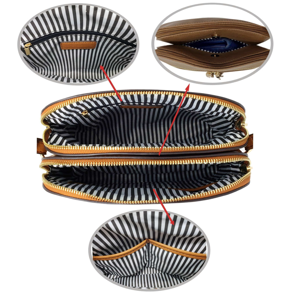 - Inside zip pocket and slip pockets