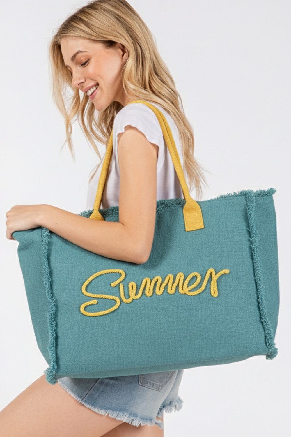 Get ready for summer with the MB0204 Sewn Rope Summer Letter Fringe Tote Bag! This versatile bag is perfect for all your warm weather adventures. With its stylish design, durable construction, and ample storage space, you'll be able to carry everything you need in one trendy tote. Don't miss out on this must-have accessory for your summer wardrobe!