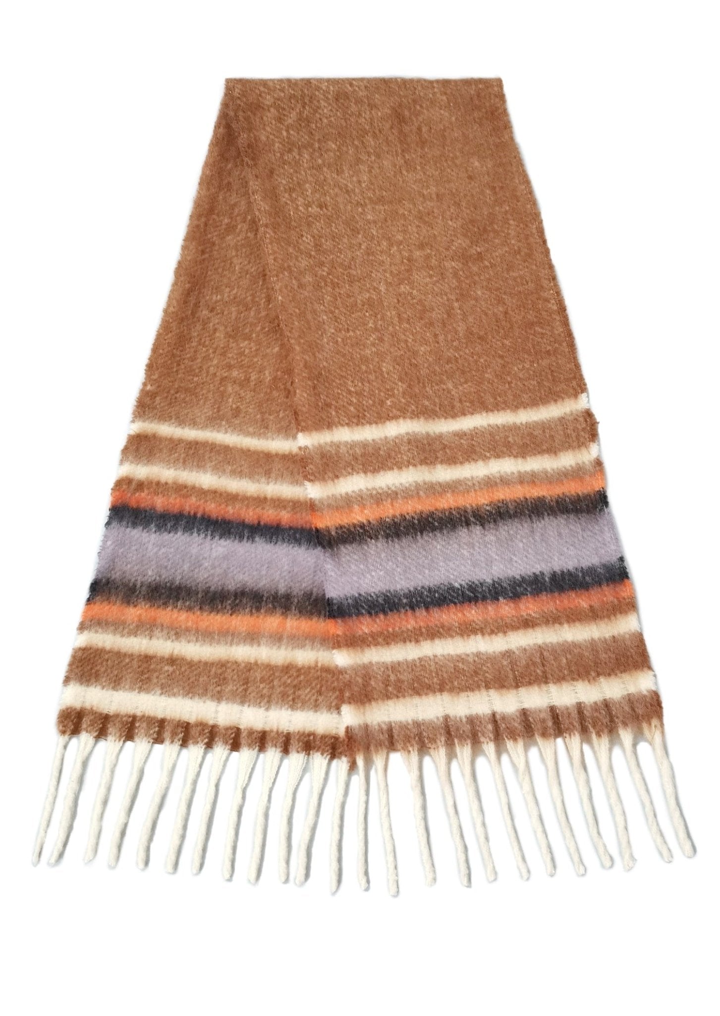 Wrap yourself in cozy comfort with this charming multi-stripe scarf featuring playful fringe details. Perfect for layering over your favorite outfits, this versatile accessory adds instant warmth and style to any season. The soft texture and vibrant striped pattern make it an easy go-to piece that works with casual or dressed-up looks. Whether you're heading out for a quick errand or settling in for the day, this scarf brings that perfect touch of flair and functionality. A wardrobe essential that's as fun as it is practical!